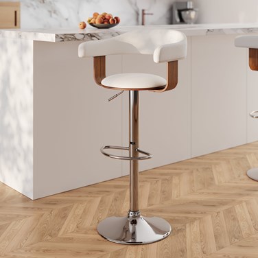 Le dossier enveloppant et l’assise moelleuse, avec repose-pieds, rendent la chaise Harold ergonomique et confortable. Modulable de 82,5 à 104,5 cm, la hauteur du pied s’adapte à vos besoins, devant votre bar ou dans votre coin cuisine.-Contenu : Vendue à l'unitéDimensions : Longueur : 51 cmProfondeur : 42 cmHauteur : 82.5 cm - 104.5 cmDiamètre du pieds : 41 cmHauteur d'assise : 62 cm - 84 cmProfondeur d'assise : 36 cmDiamètre de l'assise : 36 cmDossier : 45 x 15 cmMatière : Assise : coussin en PU avec intérieur mousse + bois paqué noyerPieds en métalInfos complémentaires : Densité de la mousse : 24 kg/m3Poids maximum : 120 kgsPivotante