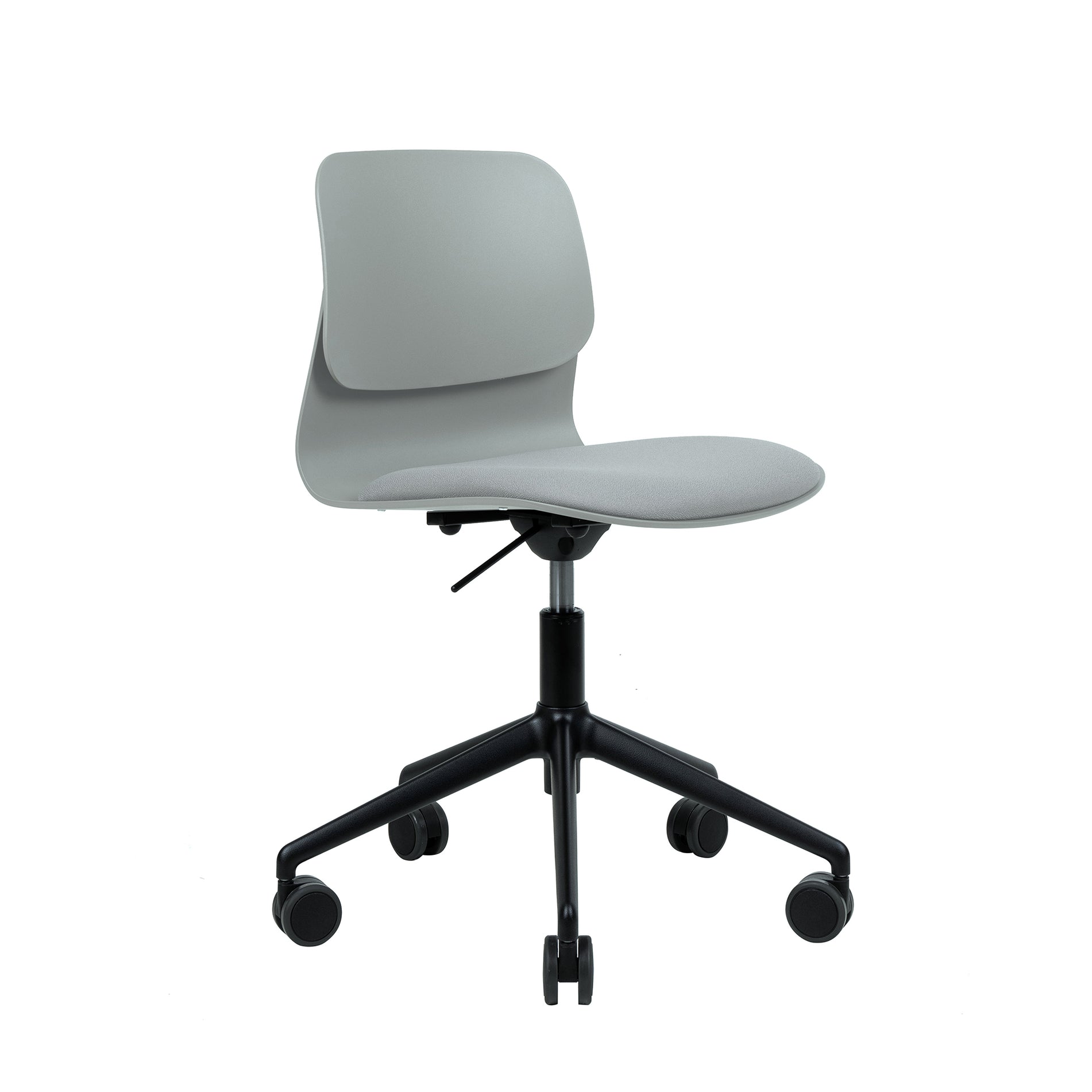 Le dossier de la chaise est fixé sur l’assise afin d'assurer souplesse et élasticité. La chaise design offre un soutien lombaire à l’utilisateur pour plus de confort et une bonne posture de travail, tout en garantissant un réglage en hauteur (de 430 à 535 mm).