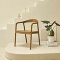 Avec son design contemporain et ses courbes douces, cette chaise en teck massif apporte une légèreté et une touche japandi à votre intérieur. Son confort optimal avec son assise large, son dossier bien proportionné et ses accoudoirs en fait un choix idéal pour le séjour, la chambre ou l'espace bureau, ajoutant chaleur et charme à chaque pièce. Cette chaise en teck combine à la perfection résistance, style et confort, devenant incontestablement votre assise préférée. Caractéristiques : Matière : Teck - Couleur : Naturel – Longueur : 58 cm – Largeur 56 cm – Hauteur : 80 cm - Largeur assise : 52 cm - Hauteur de l'assise : 45 cm - Poids : 8 kg - Garantie : 5 ans - Montage : Livré monté.