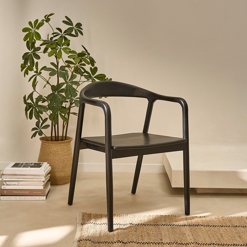 Cette chaise en teck noir ajoute une touche chic à votre pièce de vie et s'intègre harmonieusement à un décor aux tons neutres, exprimant son élégance et son charme naturel. Son assise spacieuse offre un confort optimal et constitue une invitation conviviale dans votre séjour. Caractéristiques : Matière : Teck - Couleur : Noir – Longueur : 58 cm – Largeur 56 cm – Hauteur : 80 cm - Largeur assise : 52 cm - Hauteur de l'assise : 45 cm - Poids : 8 kg - Garantie : 5 ans - Montage : Livrée montée.