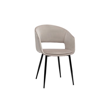 Cette chaise maîtrise avec justesse courbes vintage et design tendance . Le siège tout en rondeur s'habille d'un velours taupe , une matière douce et chaleureuse plébiscitée des intérieurs raffinés et cosy. Un clin d'oeil glamour modernisé par le piètement fuselé noir et l'originalité du dossier ajouré . On imagine parfaitement son look soigné dans une cuisine ou salle à la manger à la déco rétro chic.