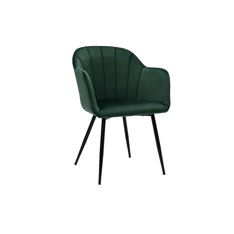 Élégante et raffinée, elle marie avec aisance son assise en velours vert à des pieds fuselés en métal noir . Ce piètement aérien vient parfaire son look et signe son style ultra contemporain .