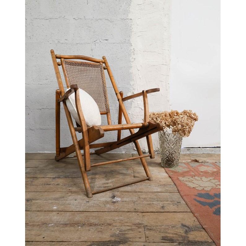 Chaise longue en bois et cannage n°11