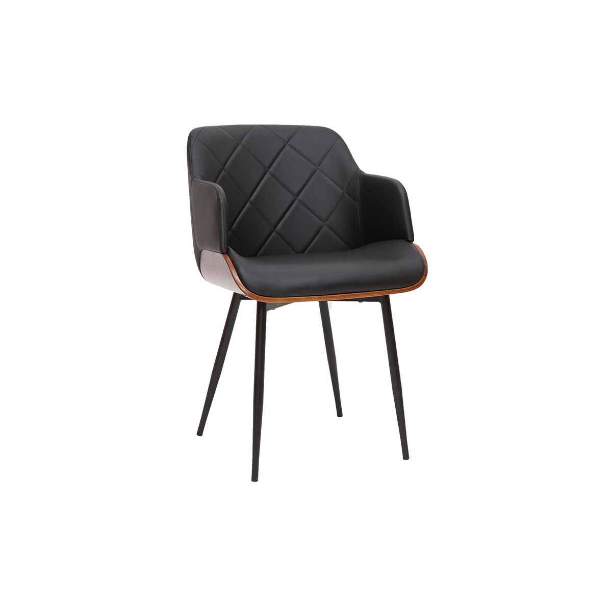 Tout vous séduira dans cette chaise tendance . L'association du polyuréthane noir matelassé , du bois foncé et du métal lui donne résolument un design dans l'air du temps. Elle marie brillament des pieds fuselés à un siège enveloppant qui vous apportera tout le confort nécessaire lors de vos repas prolongés .