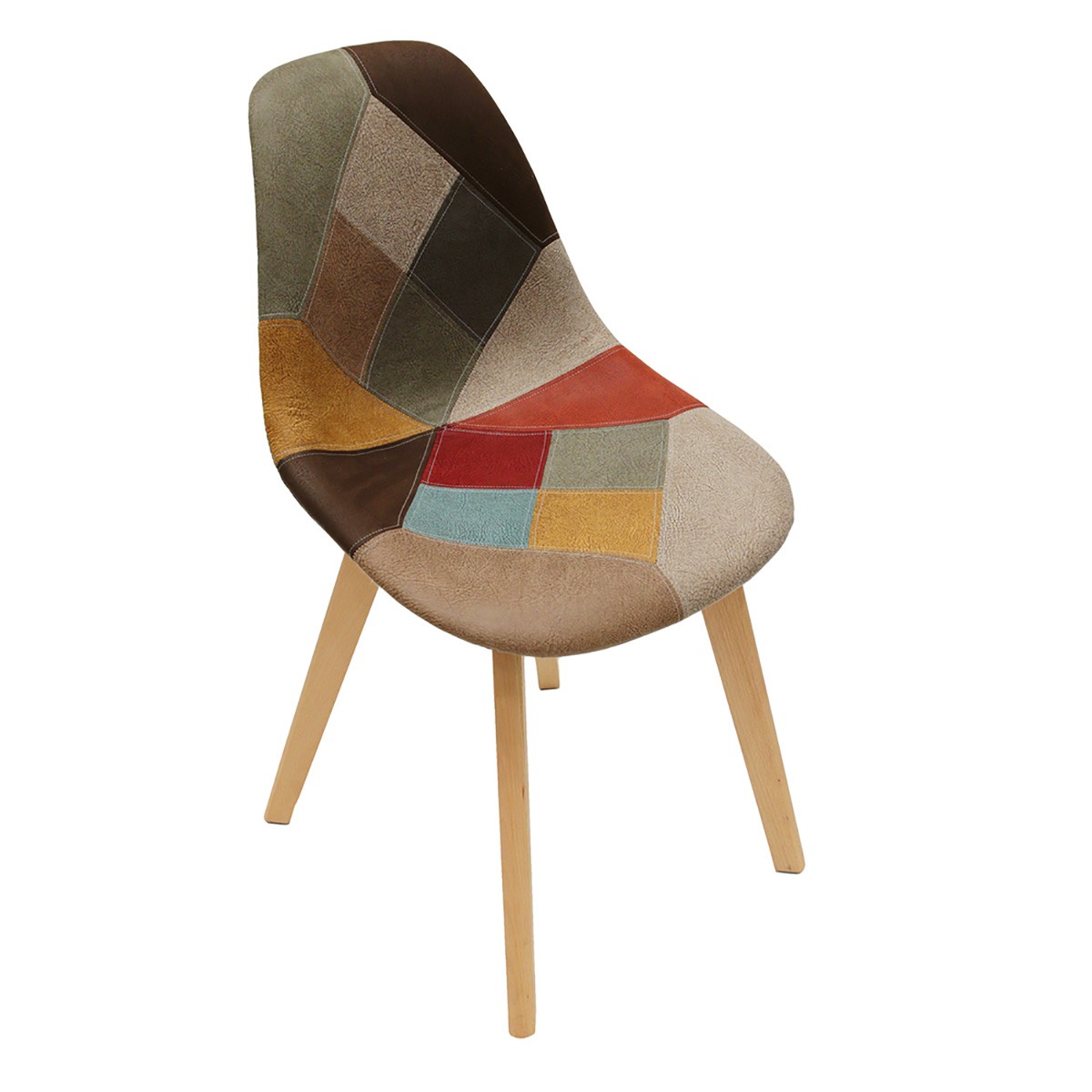 Superbe modèle que cette chaise Patchwork Louisiane de style scandinave à l'assise recouverte de tissus façon patchwork.
