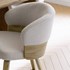 Chaise en tissu avec piètement en bois de sapin. Confortable et élégante, parfaite pour la salle à manger ou en chaise d'appoint.