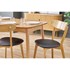 Fabriquées en contreplaqué chêne , ces petites chaises aux dimensions L44 x P56 x H82 cm sont à la fois légères et robustes. Elles se déplacent en un clin d'oeil selon nos besoins et se nettoient très facilement à l'aide d'un chiffon doux légèrement humide. Leur dossier courbé et leur assise rembourrée (densité de la mousse 35 Kg/m3) garantissent un exellent confort pour un usage quotidien. L'assise est habillée d'un revêtement noir (100% polyuréthane) qui se marie à merveille avec le bois clair. Le vernis transparent apposé sur le chêne plaqué nourrit et protège le bois.