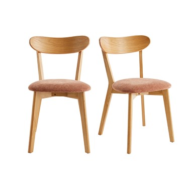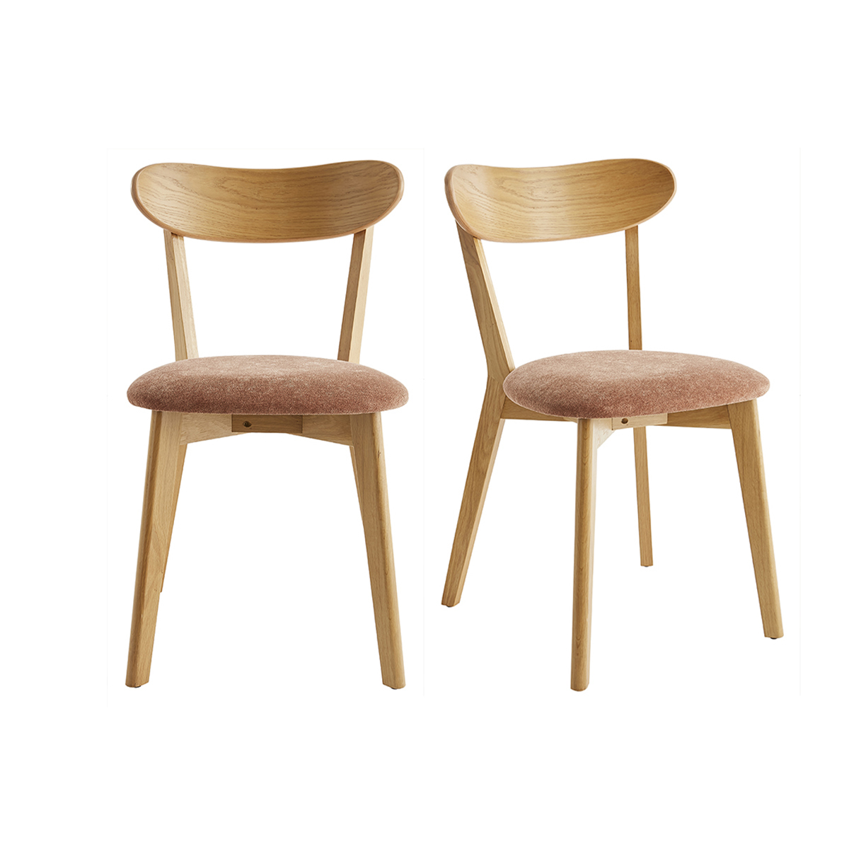 Chaises en bois clair chêne et tissu effet velours terre brûlée (lot de 2) dove