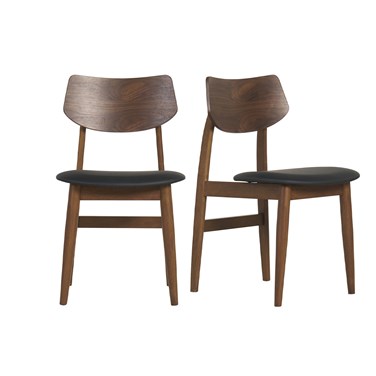 Ces chaises de salle à manger maîtrisent parfaitement l'art d'associer les matières ! Avec allure, les ELION conjuguent une structure naturelle en bois teinté noyer à une assise noire très moderne.