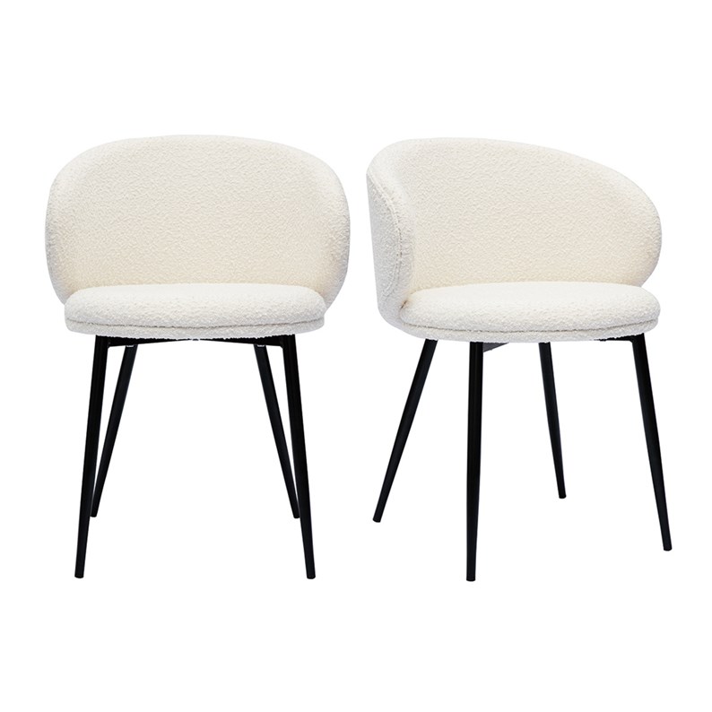 Chaises en tissu effet laine bouclée écru et métal noir (lot de 2) rosalie