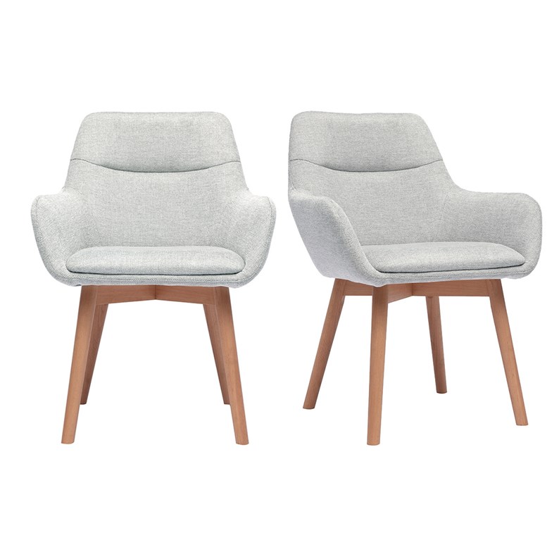 Chaises en tissu effet velours texturé gris clair et bois clair (lot de 2) aless