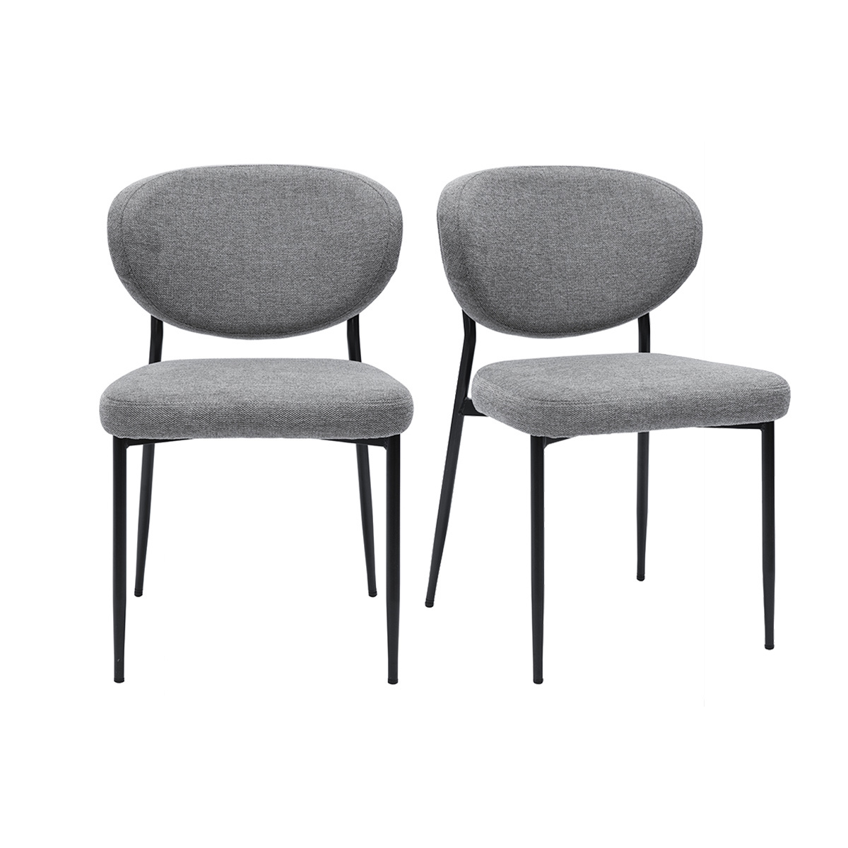 Chaises en tissu effet velours texturé gris et métal noir (lot de 2) breka