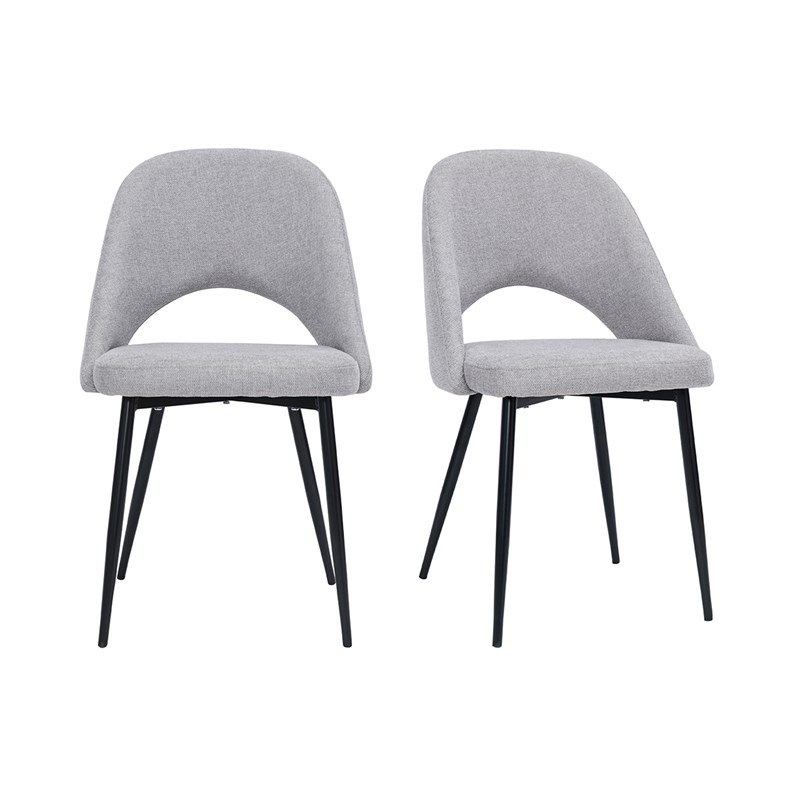 Ces assises au charme subtilement rétro sont synonymes de convivialité et de partage. Leur tissu effet velours texturé (100% polyester) se décline dans un coloris gris élégant et intemporel. Les pieds fuselés en métal noir apportent de la légèreté à la silhouette et s'accordent aisément avec tous les styles de tables à manger .