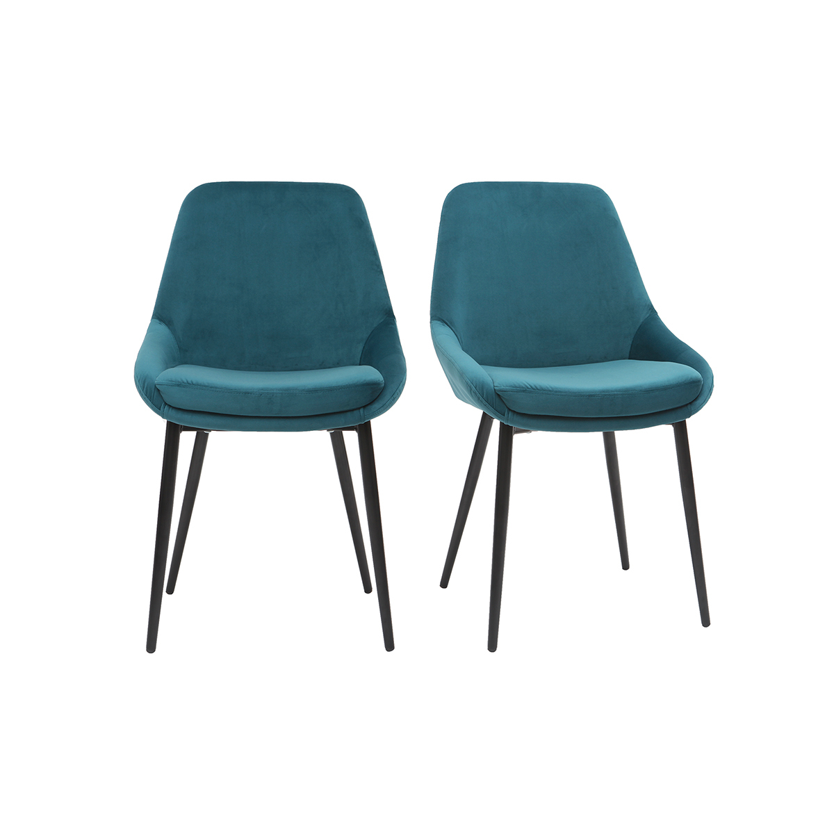 Chaises en tissu velours bleu pétrole et métal noir (lot de 2) holo