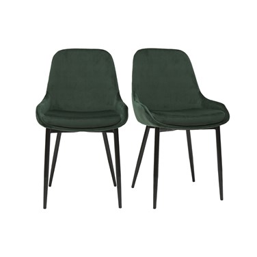 Chaises en tissu velours vert foncé et métal noir (lot de 2) holo