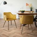 Lot de 2 chaises avec accoudoirs en velours jaune moutarde - daisy