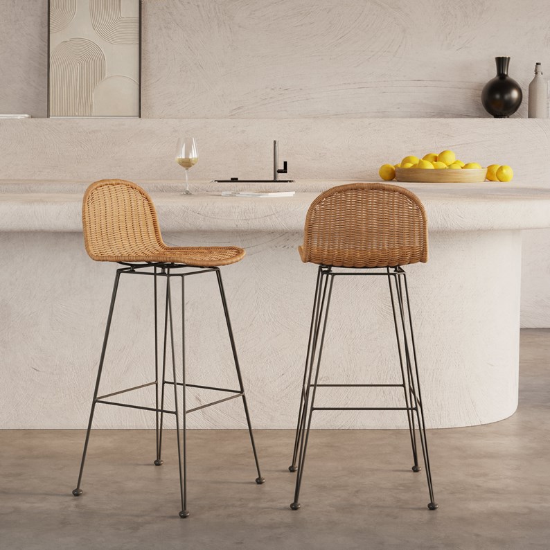 -Contenu : Lot de 2Dimensions : Longueur : 44.5 cmProfondeur : 46 cmHauteur : 86.5 cmLargeur d'assise : 42 cmProfondeur d'assise : 38 cmHauteur d'assise : 63 cmHauteur du dossier : 23.5 cmLargeur du dossier : 38 cmHauteur du repose pied : 21.5 cmMatière : Structure en métal Assise et dossier en résine tresséeInfos complémentaires : Poids max : 150 kgsPour l'intérieur et l'extérieurPour choisir la bonne hauteur d'assise, retenez que l'espace entre l'assise et la table doit être d'environ 25/30 cm.Montage : Piètement à assemblerPoids produit : 5.75kgEntretien : Pour nettoyer la surface de la chaise de bar en résine tressée, utiliser une éponge imbibée d'eau tiède et de savon de Marseille.Information colis : 47,5x46x70,5 cmRecyclabilité : Totalement recyclable