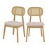 Lot de 2 chaises en bois clair, tissu beige et rotin synthétique - maria