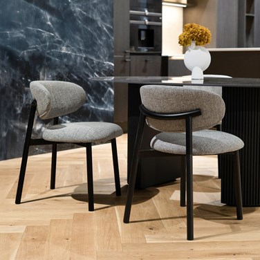 Lot de 2 chaises en tissu gris foncé chiné et pieds en métal noir - nao