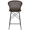 Composée de résine tressée, cette chaise présente un coloris marron foncé très tendance. L’assise et le dossier offrent des lignes géométriques rehaussées par le contraste opéré avec un piètement en métal noir. Une fine structure croisée apporte un aspect graphique à ce siège aussi esthétique que confortable. Enfin, un indispensable repose-pied complète ce modèle qui fait rimer ergonomie avec style.