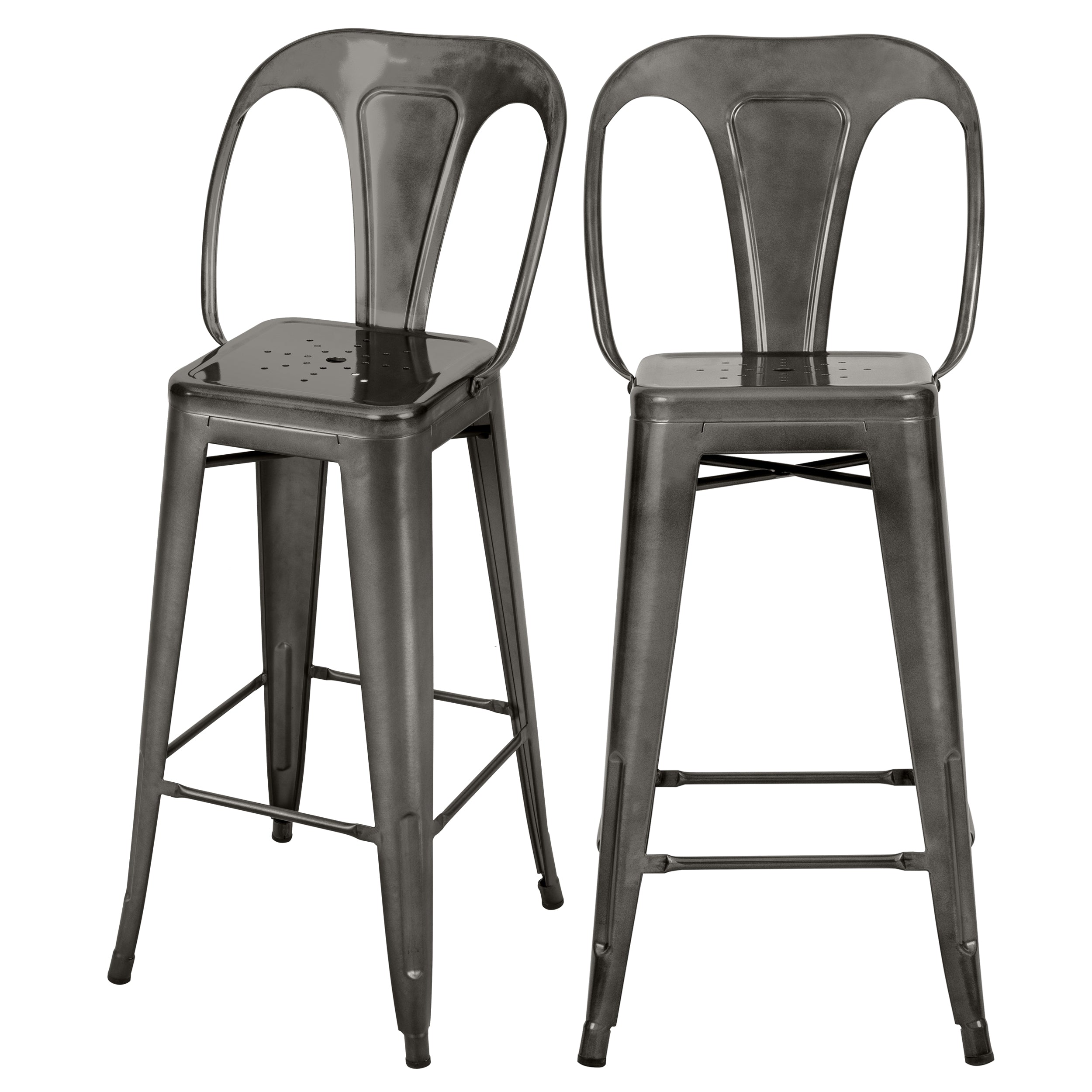 -Contenu : Lot de 2Dimensions : Longueur : 40 cmProfondeur : 41 cmHauteur : 100 cmHauteur d'assise : 67 cmAssise : 30.5 x 30.5 cmHauteur du dossier : 35 cmHauteur du repose-pieds : 20 cmMatière : Métal, finition brillanteInfos complémentaires : Poids maximum supporté : 160 kgHauteur d'assise idéale pour un îlot ou un bar de 90 cm de hautPour choisir la bonne hauteur d'assise, retenez que l'espace entre l'assise et la table doit être d'environ 25/30 cm.Montage : Piètement à assemblerPoids produit : 5.5kgEntretien : Frotter avec une éponge imbibée d'eau savonneuse puis sécher avec un linge propre.Information colis : 43 x 43 x 83 cmRecyclabilité : Totalement recyclable