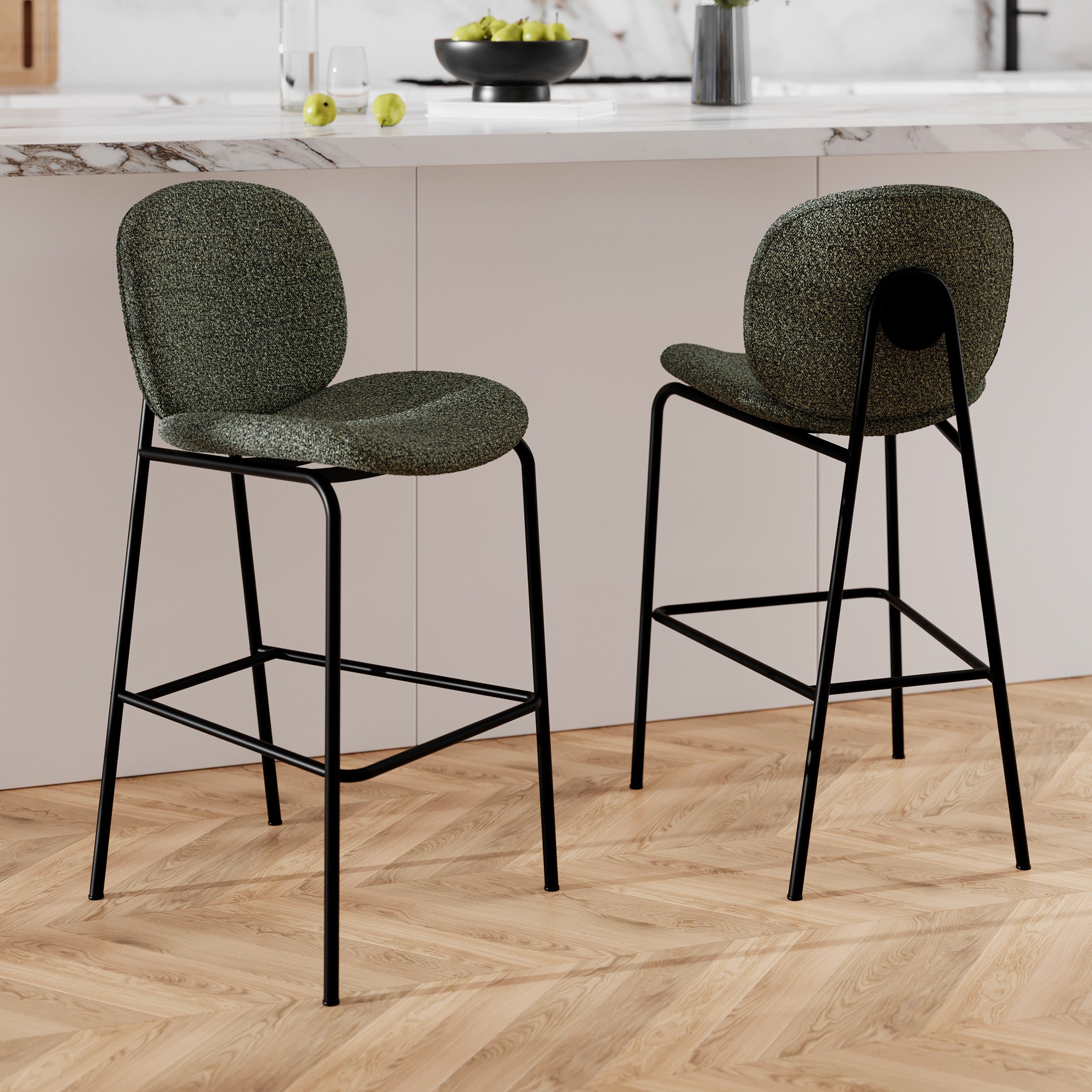 Lot de 2 chaises pour îlot central en tissu bouclé vert 63,5 cm - iris