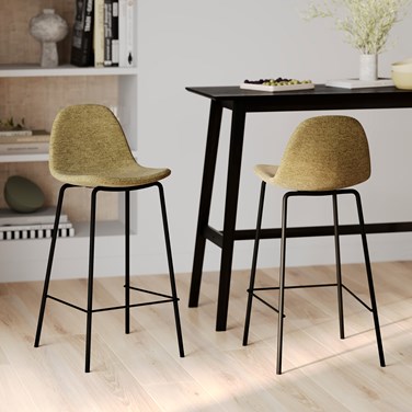 Ces chaises Henrik sont parfaites pour être positionnées devant un îlot de cuisine ou un mange-debout, ajoutant fonctionnalité et style à votre espace.-Contenu : Lot de 2Dimensions : Longueur : 43 cmProfondeur : 45.5 cmHauteur : 88 cmAssise : 37.5 x 32 cmHauteur d'assise : 65.5 cmHauteur du dossier : 28 cmMatière : Assise et dossier en tissuPieds en métalInfos complémentaires : Poids maximum : 120kgsDensité de la mousse : 30kg/m3Pour choisir la bonne hauteur d'assise, retenez que l'espace entre l'assise et la table doit être d'environ 25/30 cm.Montage : Piètement à assemblerPoids produit : 4.5kgEntretien : Pour ôter la poussière, utiliser un aspirateur. En cas de tache, se munir d'une éponge douce imbibée d'un peu d'eau tiède savonneuse. Rincer puis sécher immédiatement.Information colis : 43 x 48 x 67 cmRecyclabilité : Totalement recyclable
