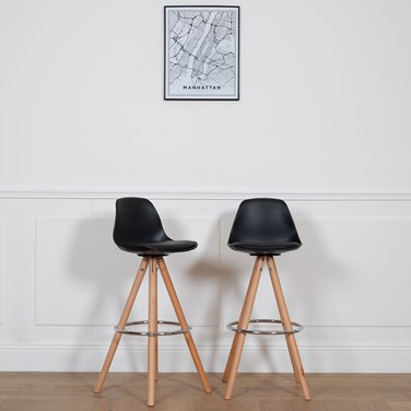 Lot de 2 tabourets scandinaves tobias noirs avec coussin