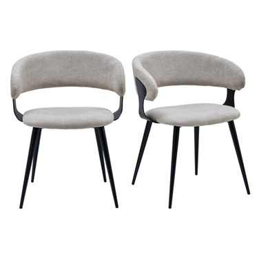 NINO: Chaise Design ""Open Back"" Grège.Illuminez votre salle à manger avec cette chaise au design architectural résolument moderne. Mariant le tissu texturé Luxury vibrant à une structure en métal noir graphique, elle joue la carte du contraste pour dynamiser votre décoration intérieure.Son allure aérienne cache une conception pensée pour le confort et la durabilité :Design ""Aérien"" Unique : La véritable signature de cette chaise réside dans son dossier suspendu (""open back""), relié à l'assise par une élégante pièce de métal incurvée. Cette ouverture allège visuellement l'espace tout en apportant une touche sculpturale.Ergonomie et Soutien : Le dossier en arc de cercle épouse naturellement la courbure du dos pour un maintien agréable, tandis que l'assise large offre un confort moelleux.Tissu Lumineux et Texturé : Habillée du tissu Luxury, labellisé Oeko-tex au tissage riche (effet chenille), elle apporte instantanément chaleur et caractère à la pièce, tout en étant doux au toucher.Stabilité et Finesse : Le piétement en métal noir mat, aux lignes fines et fuselées, assure une grande robustesse sans alourdir la silhouette.Une chaise qui capte la lumière et les regards, idéale pour un intérieur qui a du pep's.Version présentée en coloris Grège.