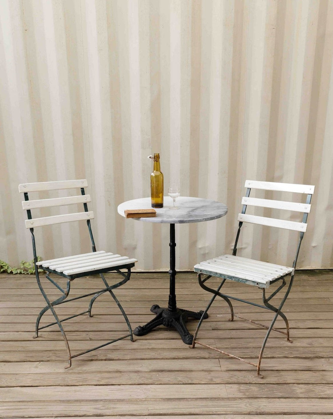 Apportez une touche rétro à votre espace extérieur avec cette paire de chaises vintage pliantes en métal patiné. Leur design subtil et les lattes en bois ajoutent une note chaleureuse, parfaite pour savourer un café sur le balcon. Pratiques et élégantes, ces chaises sont idéales pour ceux qui recherchent un mobilier à la fois esthétique et fonctionnel. Transformez vos moments de détente en un véritable instant de convivialité grâce à ce duo charmant.