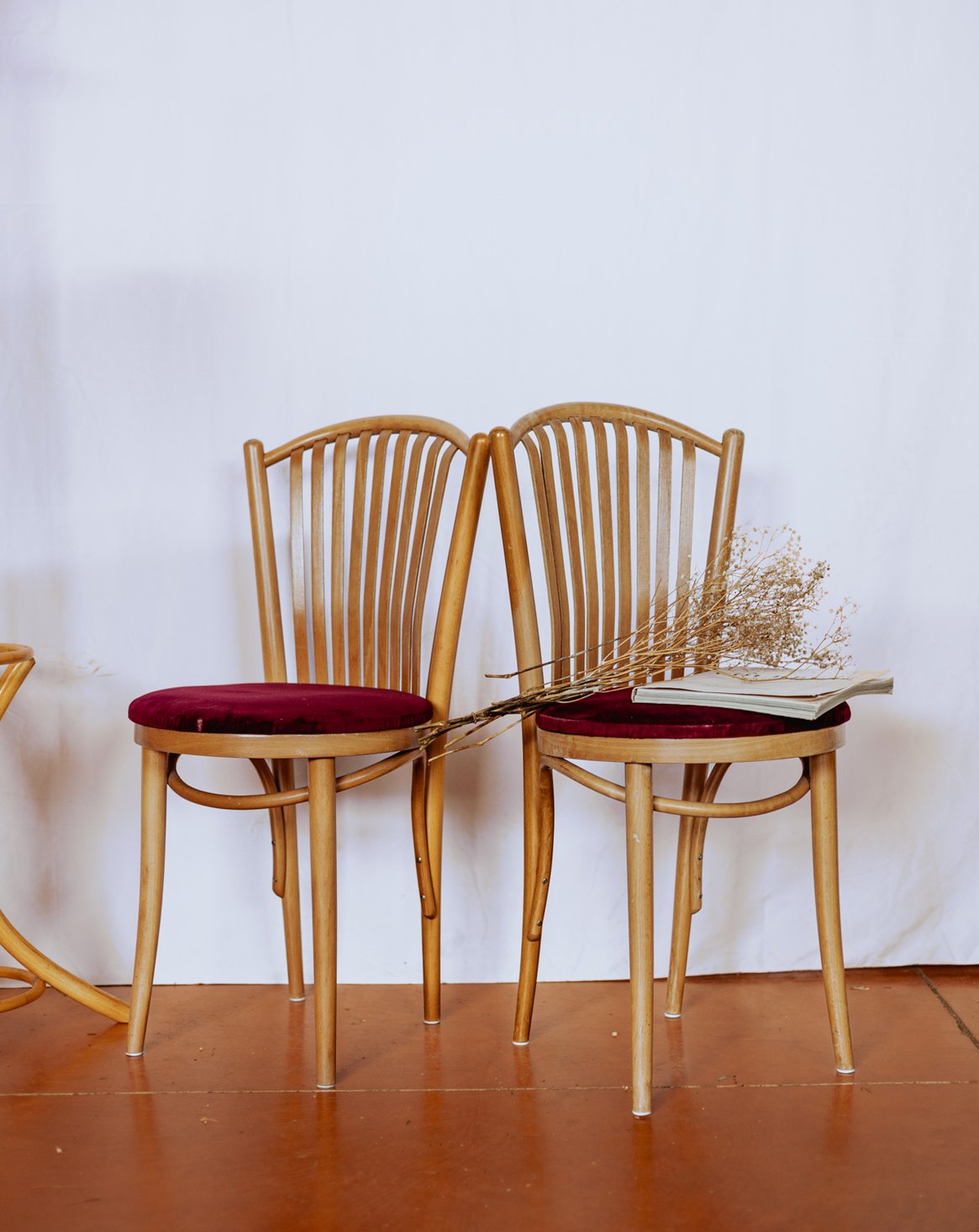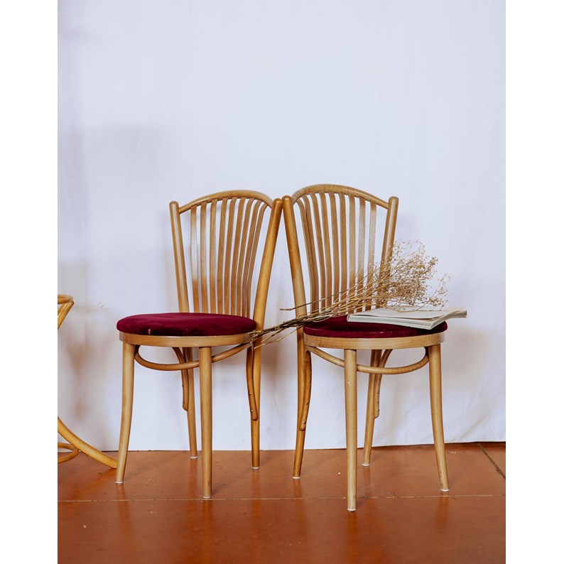Paire de chaises rouges en bois clair n°1111