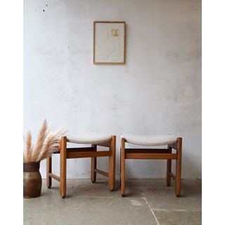 Paire de poufs en laine et bois n°75
