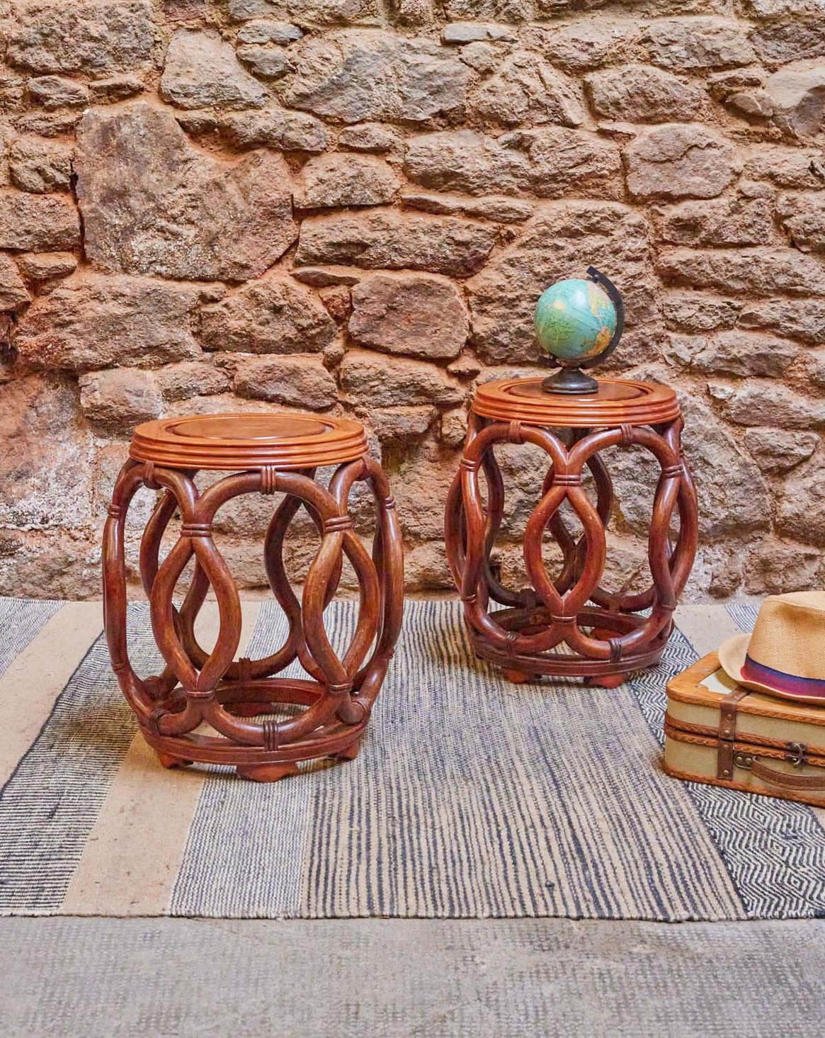 Sublimez votre intérieur avec cette paire de tabourets en bois de rose, essence rare et recherchée au veinage chaleureux; leur design audacieux et unique apporte une présence sculpturale tout en restant fonctionnel. La solidité du matériau permet un usage assis quotidien ou de les employer en bout de canapé, en chevets ou comme petites tables d'appoint. Leur proportion équilibrée s'harmonise aussi bien avec un salon contemporain qu'avec une chambre aux accents naturels, pour une ambiance chaleureuse et raffinée.