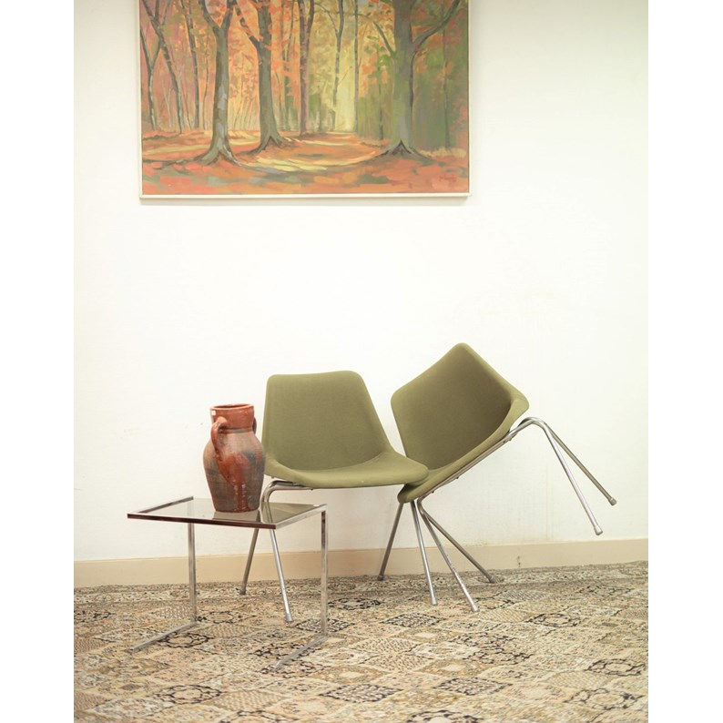 Apportez une touche de modernité à votre intérieur avec cette paire de chaises au style contemporain. Dotées d'une housse en tissu vert élégant, leur coque en plastique assure un confort optimal, tandis que les pieds en métal ajoutent une note de robustesse. Bien que présentant quelques traces d'usure, ces chaises témoignent de leur caractère unique et s'intègrent facilement dans divers décors. Idéales pour agrémenter votre salle à manger ou votre bureau, elles allient esthétique et praticité.