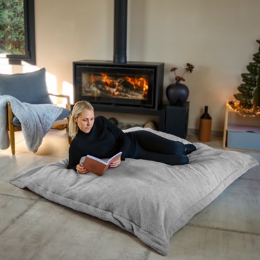 Disponible en deux dimensions, le pouf mesure environ 90 cm de largeur par 140 cm de longueur et le pouf XXL mesure 150 cm par 180 cm. La housse en sherpa est lavable, programme doux à 30°.