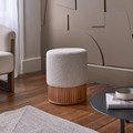Pouf en teck et tissu bouclette 38 cm