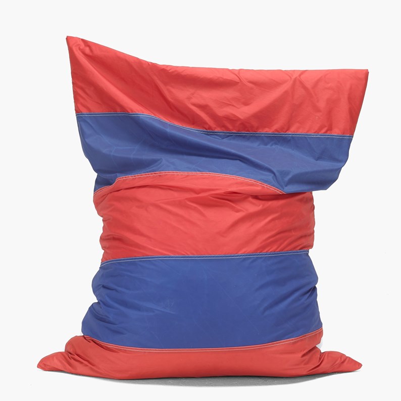 Bâche de chapiteau (dos blanc) : Passées les années de lendemain de fêtes, les bâches de chapiteau viennent prendre leur retraite sous les poufs.