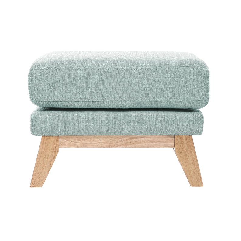 Pouf repose-pieds déhoussable en tissu vert lagon et bois clair oslo