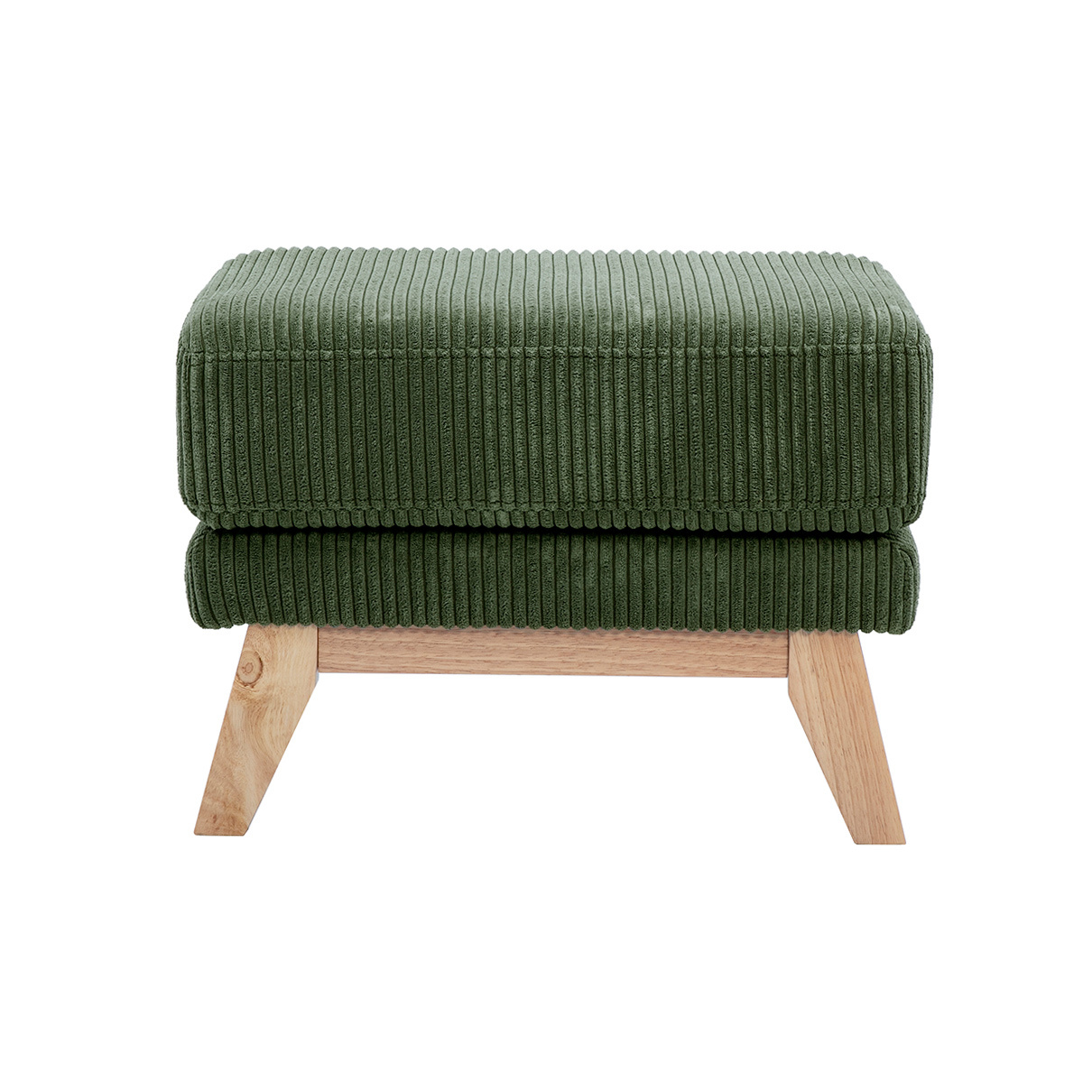 Pouf repose-pieds en tissu velours côtelé vert kaki et bois clair oslo