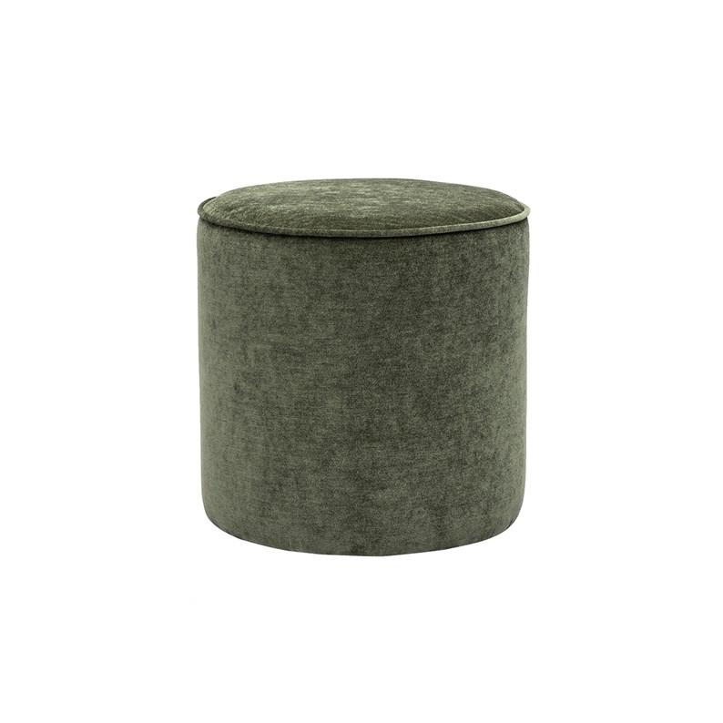 Pouf rond en tissu effet velours vert kaki d40 cm paul