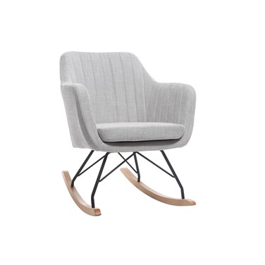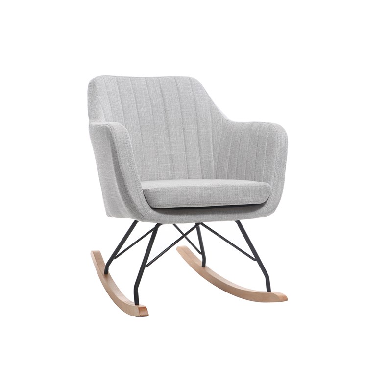 Rocking chair en tissu gris clair, métal noir et bois clair aleyna