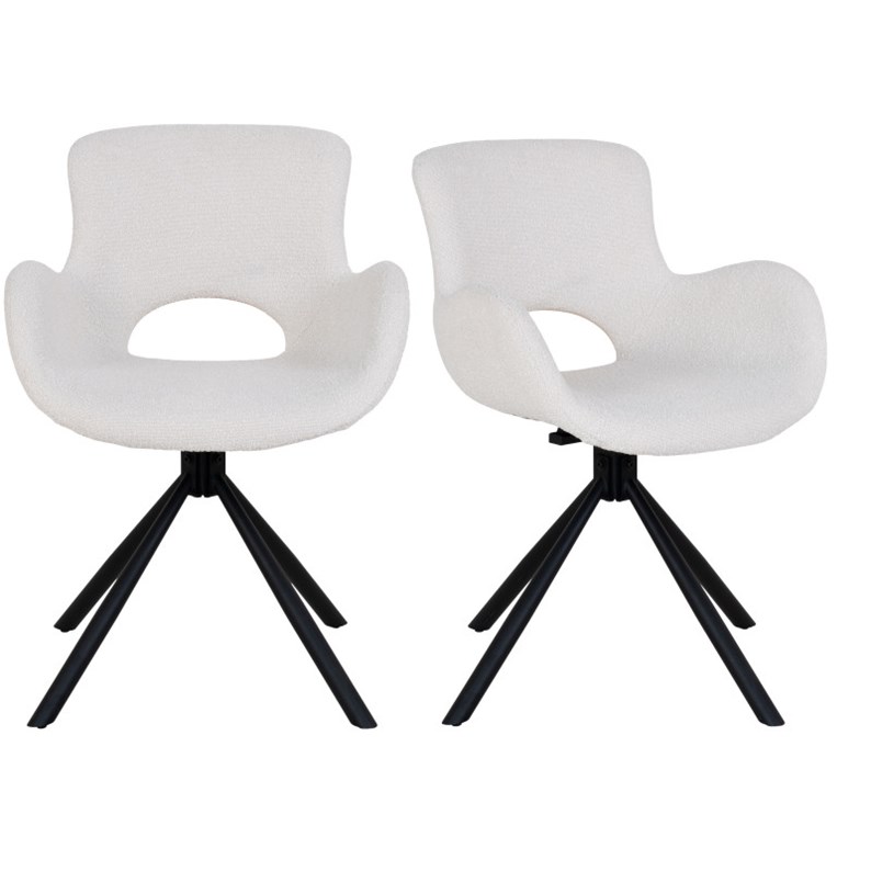 Collection SIXTY : Chaise Pivotante Tissu BoucléTendance et confort. Cette chaise pivotante en tissu bouclé écru apporte une douceur moderne à votre table. La rotation à 360° ajoute une fonctionnalité bienvenue. L'alliance parfaite de la matière et de la ligne pour un repas flexible.Dimensions : L. 58 x l. 59 x H. 82,5 cm