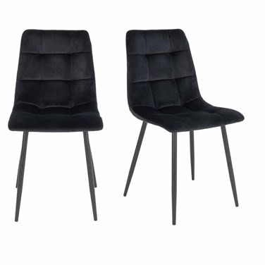 Collection SVIN : Chaise Velours NoirIntensité veloutée. Cette chaise en velours noir offre une assise somptueuse et une silhouette nette. Le piètement en métal noir assure l'harmonie du design. L'alliance parfaite de la matière et de la ligne pour un style affirmé.Dimensions : L. 55 x l. 44 x H. 86 cm