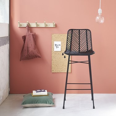 Design chic et tendance pour ce tabouret en rotin et métal noir assurant un confort grâce à son dossier. Dans votre cuisine ou dans votre salle à manger autour d'une table haute, ce tabouret en rotin trouvera facilement sa place.