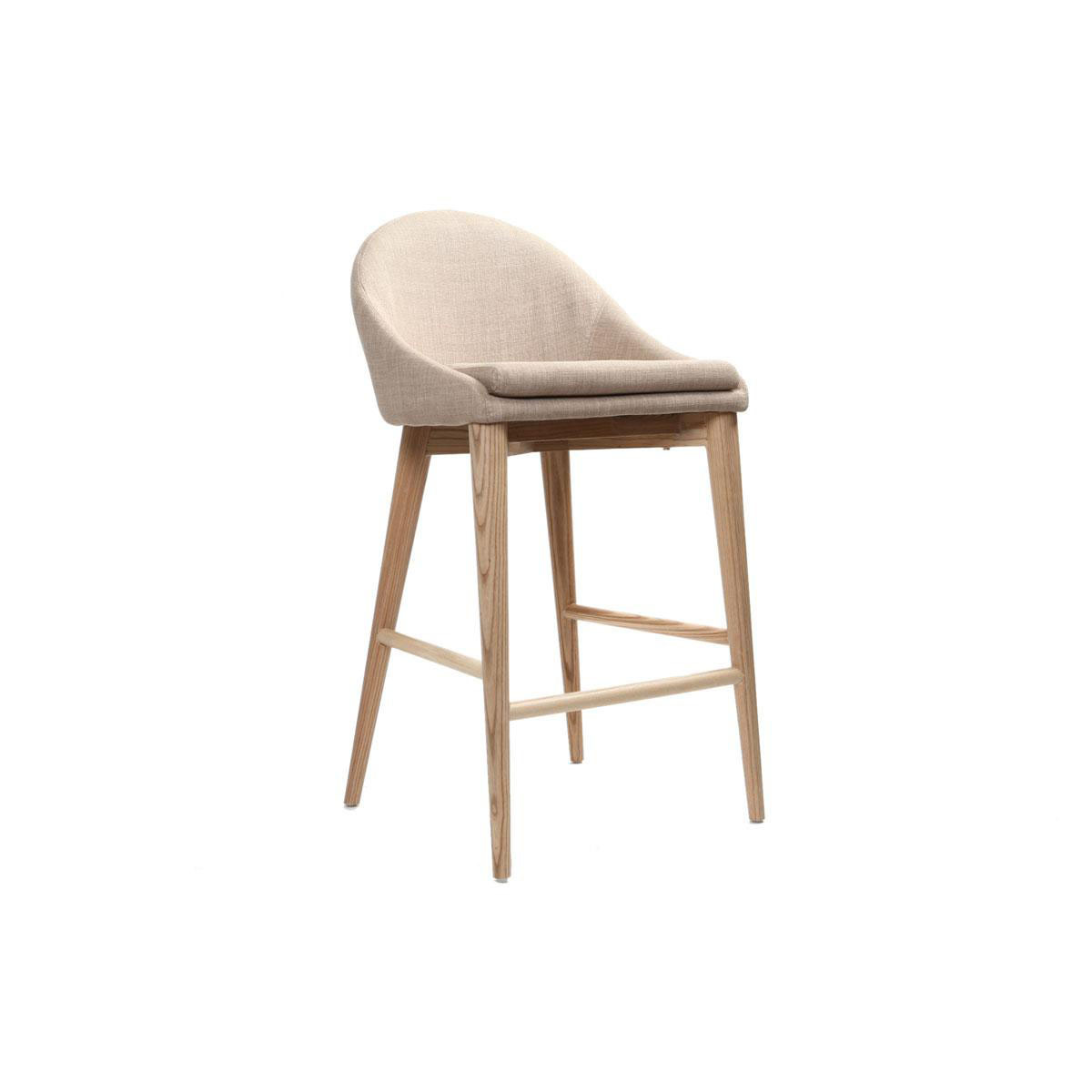 Tabouret de bar en tissu beige et bois clair 65 cm dalia