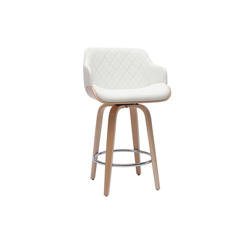 Tabouret de bar design pivotant 360° blanc et bois clair H65 cm LUCIEN livré prêt à assembler.
