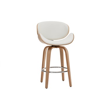Tabouret de bar pivotant blanc et bois clair 65 cm pivotant 360° walnut