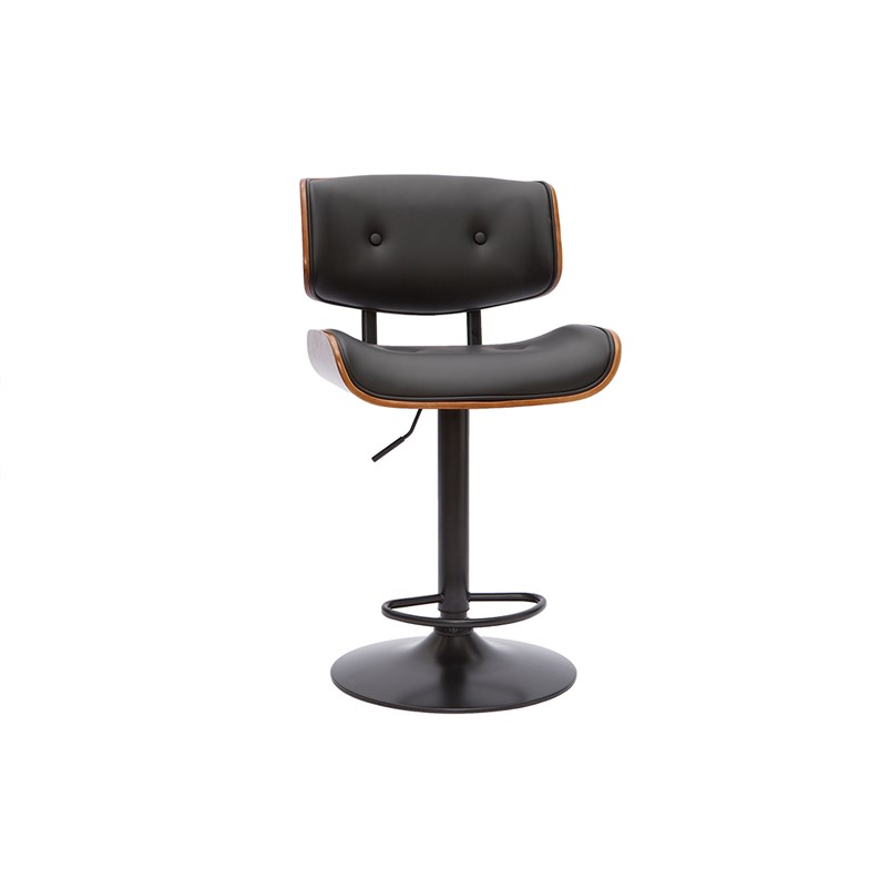 Tabouret de bar design réglable pivotant 360° noir et bois foncé BASILE livré prêt à assembler.