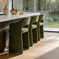 Tabouret de bar en tissu au design enveloppant avec dossier incurvé et accoudoirs intégrés. Confortable et élégant, il est équipé d'un repose-pieds en métal pour un usage pratique et agréable au quotidien.