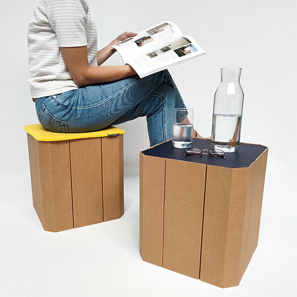 Le tabouret est conçu uniquement à partir de carton recyclé et recyclage à 100% !